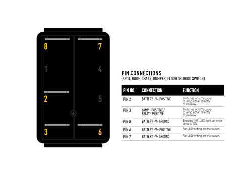 Complete your auxiliary LED light install with one of our range of panel mount rocker switches, for 12V applications only. Each switch is able to be illuminated and features IIIR branding (to represent Road, Rally, and Race), and text specific to your light and install location including: Bumper, Chase, Flood, Hood, Roof, and Spot. Each switch is compatible with our standard wiring harness kits, but any additional connecting wires will need to be purchased separately.